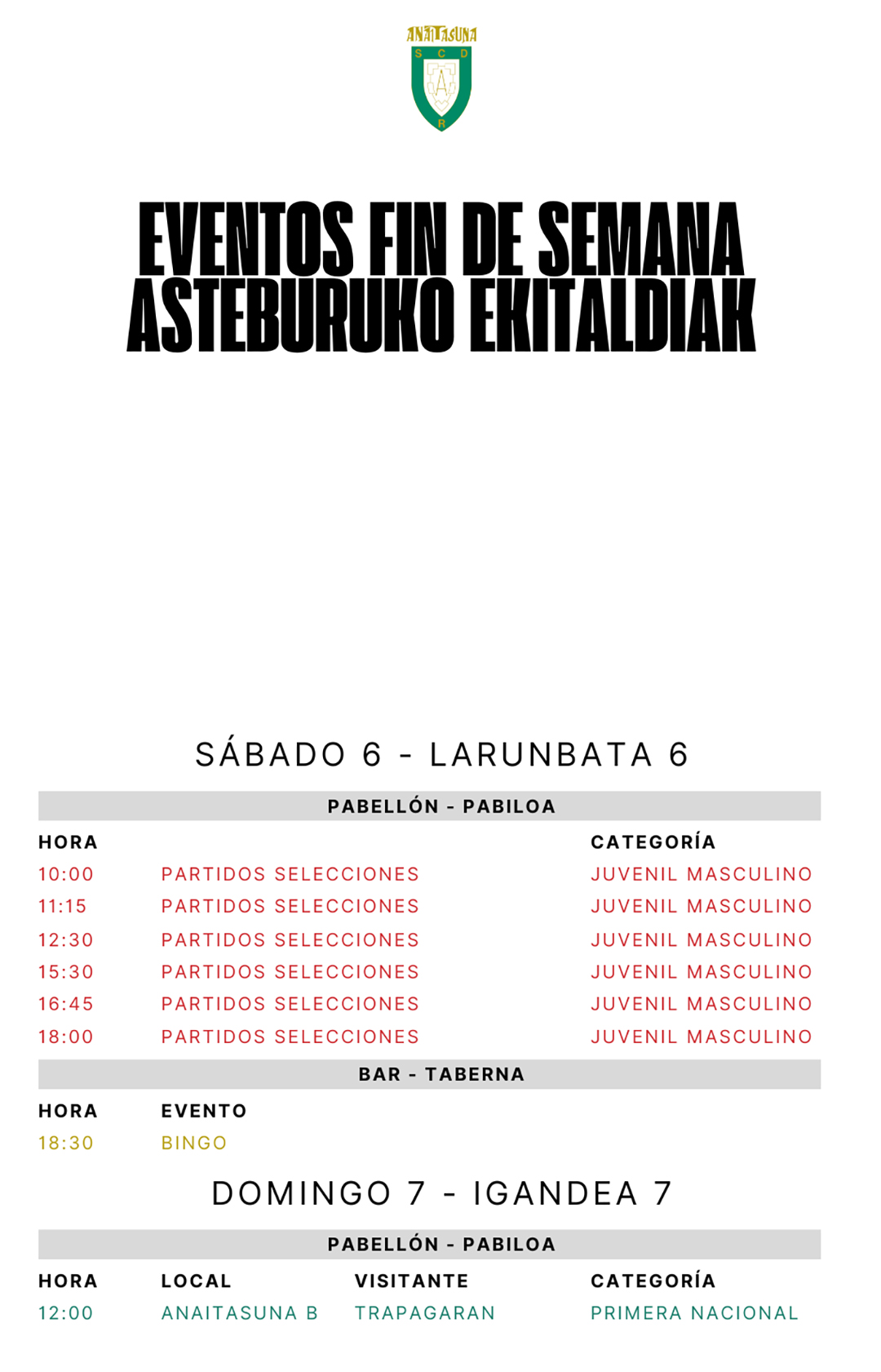 - Kontsultatu hemen asteburu honetan klubean izango diren ekitaldiak.