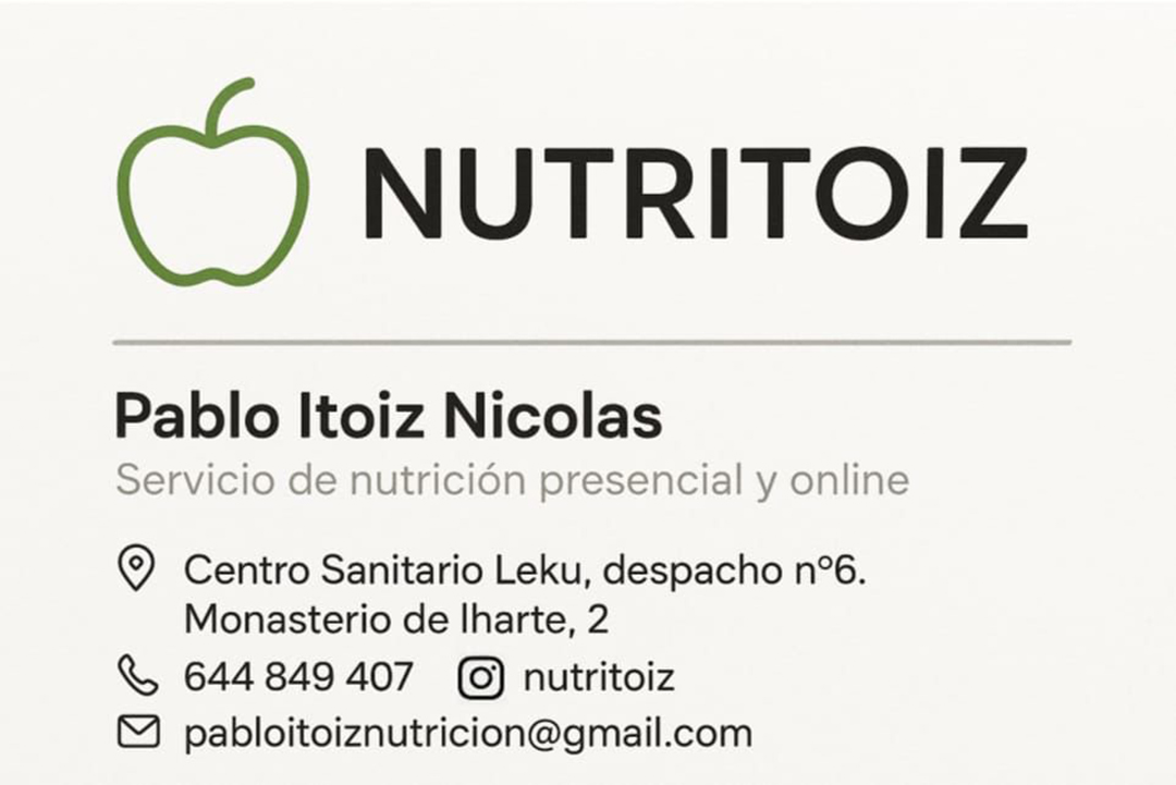 - Pablo Itoiz nutrizionistak bere zerbitzuetan %20-ko beherapena eskainiko die Anaitasunako bazkideei! Aurkeztu bere kontsultan zure bazkide-txartela eta NAN-a beherapen honetaz disfrutatzeko.