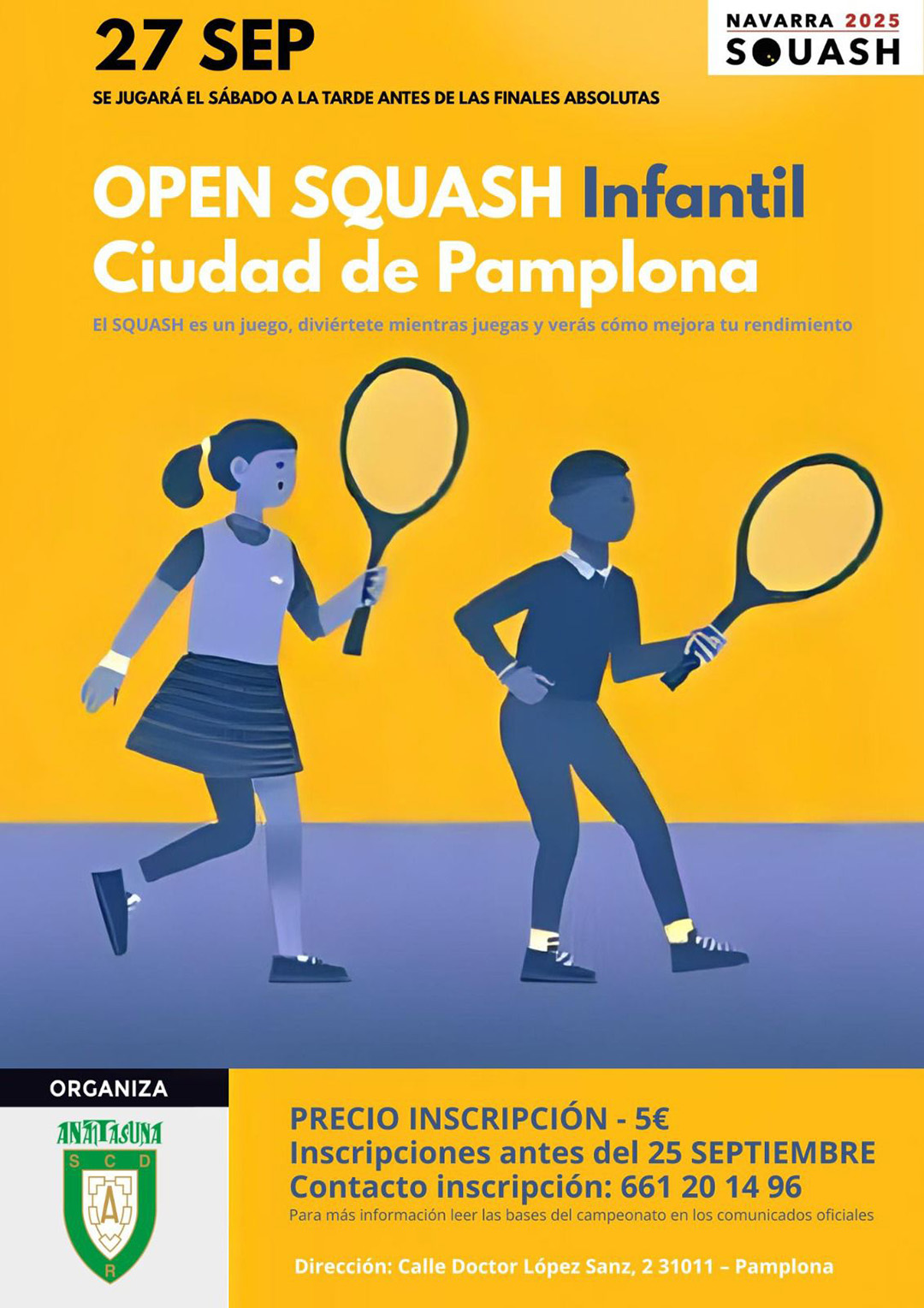 - Datozen irailaren 25ean eta 27an, gure instalazioetan bi squash txapelketa jokatuko dira.