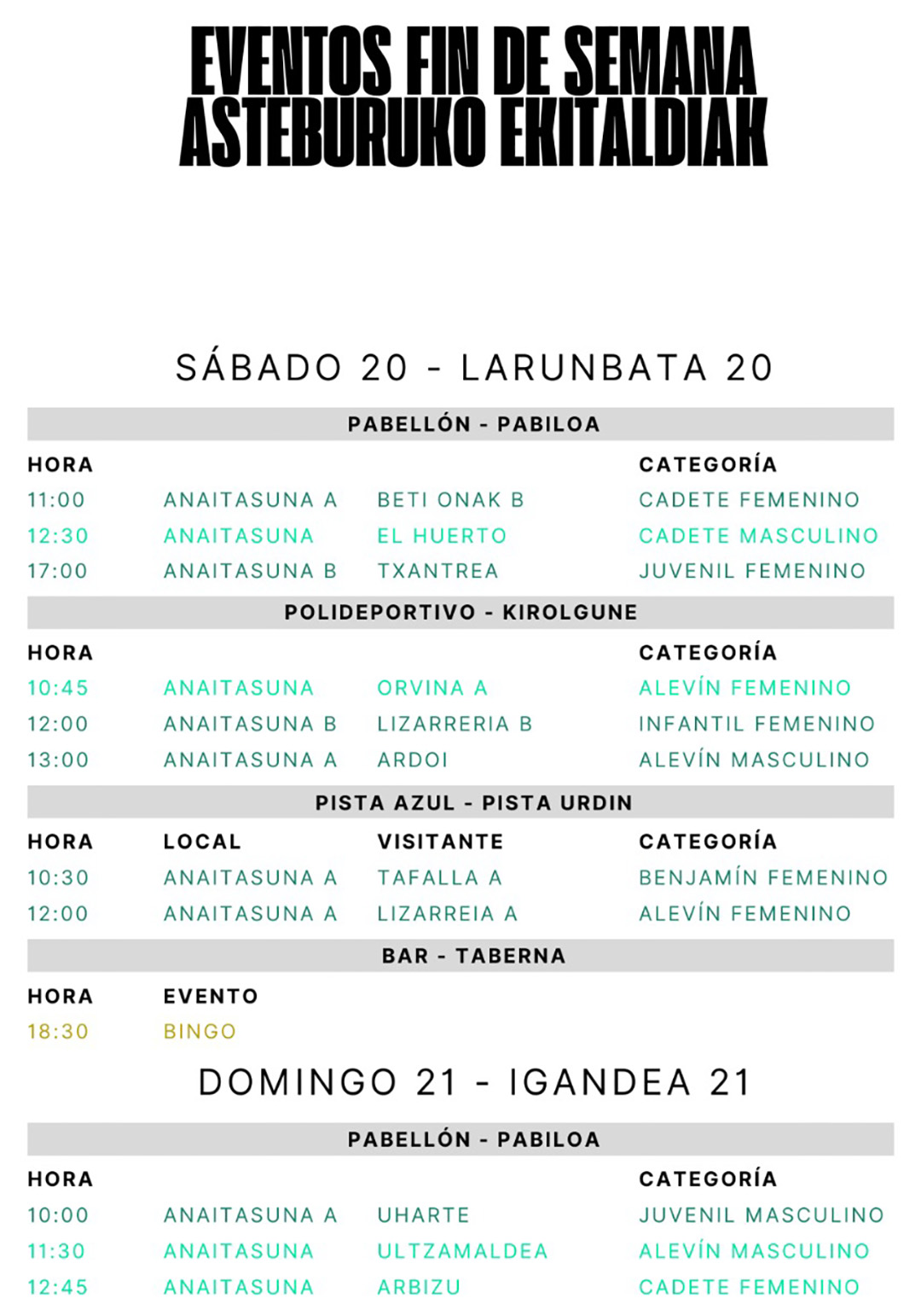 - Consulta en la imagen los eventos que se disputarán este fin de semana en el club.
