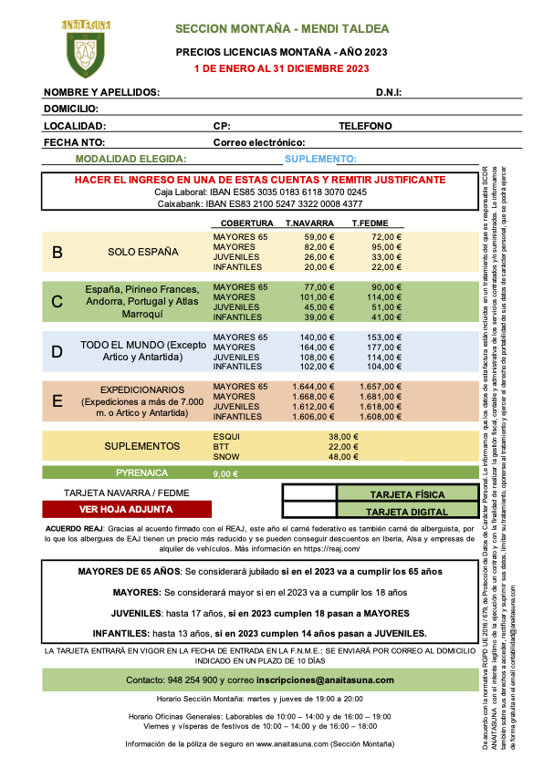 más información e inscripciones en el correo socios@anaitasuna.com